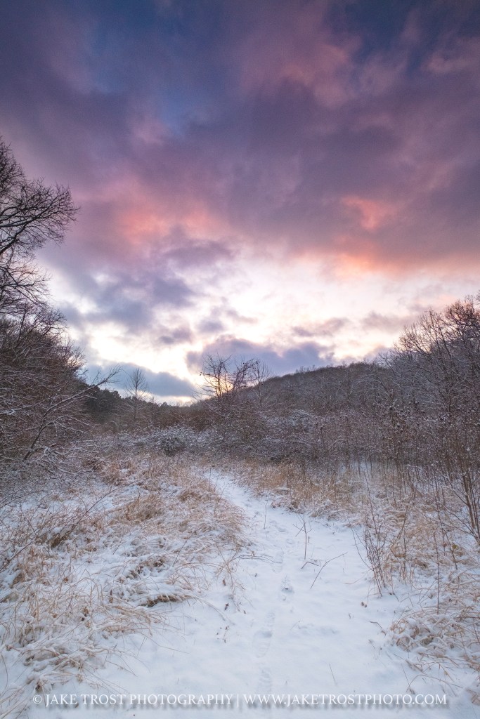 With the dull, gray, rainy winter we’ve had here in Missouri, I haven’t felt to compelled to get out. The past two winters I’ve at least been able to get a solid snowshoe in. This doesn’t seem to be the case this year. However this past week we did get a few inches of the white stuff to liven up our landscape.