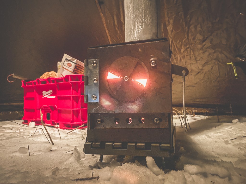 The meal this night was chili Mac with beef from Trailtopia (really good by the way) and ONE beer. Heavy drinking is not good for this type of climate. At least in my opinion, too much and they’ll make a movie about you. Same with keeping that fire going in the stove. I won’t do it but I know some do. Me personally, I won’t take the risk of not waking up due to carbon monoxide poisoning. That’s why you heat the hell out of the tent and get nice and toasty and have a sleeping bag that’s worth a damn. In my case, I use a Mountain Hardwear Lamina -30ºF and this particular night I threw in a Nalgene of hot water with me. Perfect. I slept sound from 9p-6a.