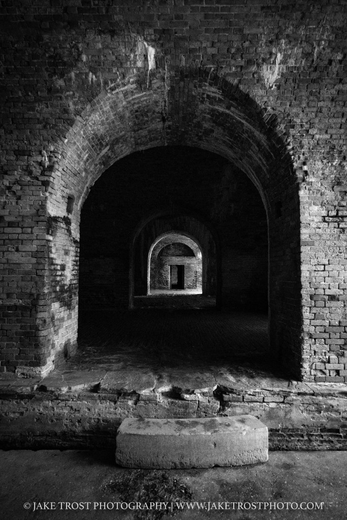 I hope you enjoyed the photographs. I chose black and white just because of the timeless vibe for such as old and worn structure. I chose the compositions and vantage points because I felt they made the most impact. I felt a “straight on” series would help translate the intimidating feeling the fort puts off into media form.