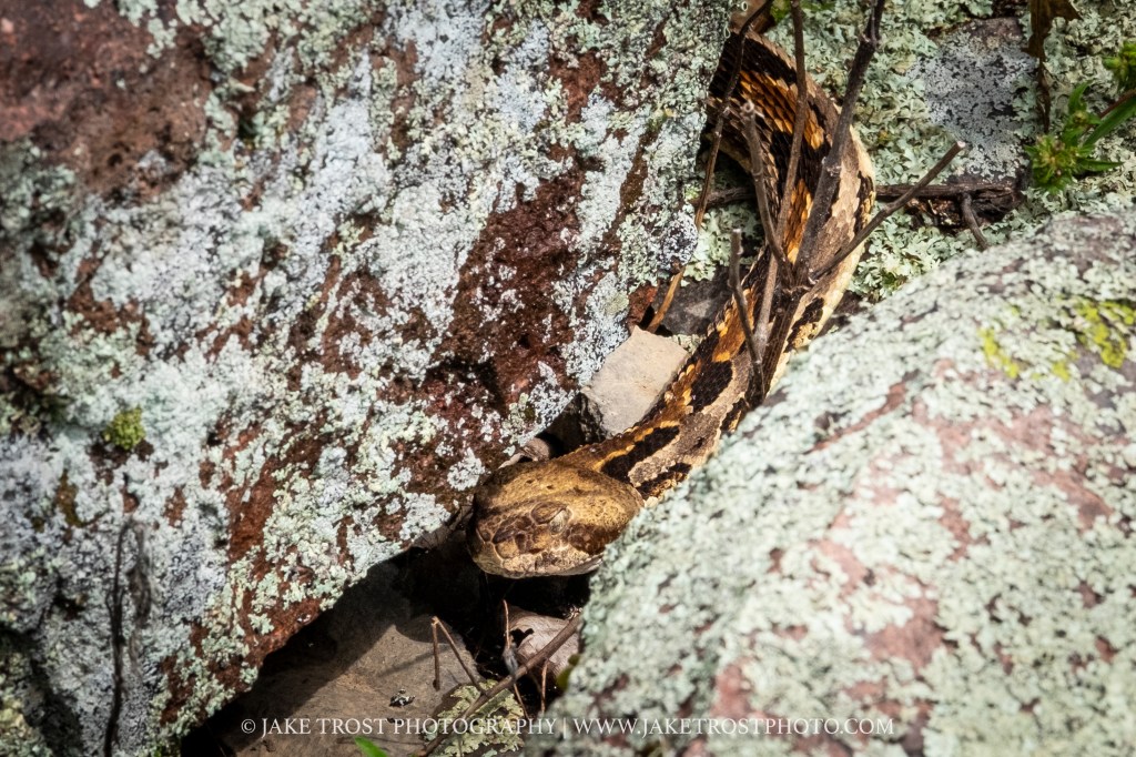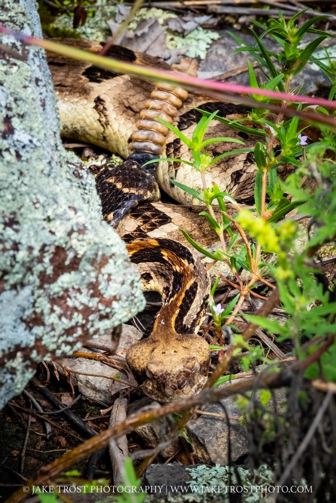 Seeing a timber rattler in the wild is a real treat, if you can appreciate it no matter your thoughts on snakes. I used to hate snakes and still am very uneasy about them. But as a photographer I can’t help but try and find these magnificent creatures in their natural habitat. I am looking forward to this pursuit of rattlesnake photography, cautiously and carefully. I hope you enjoy the photos from this particular encounter.
