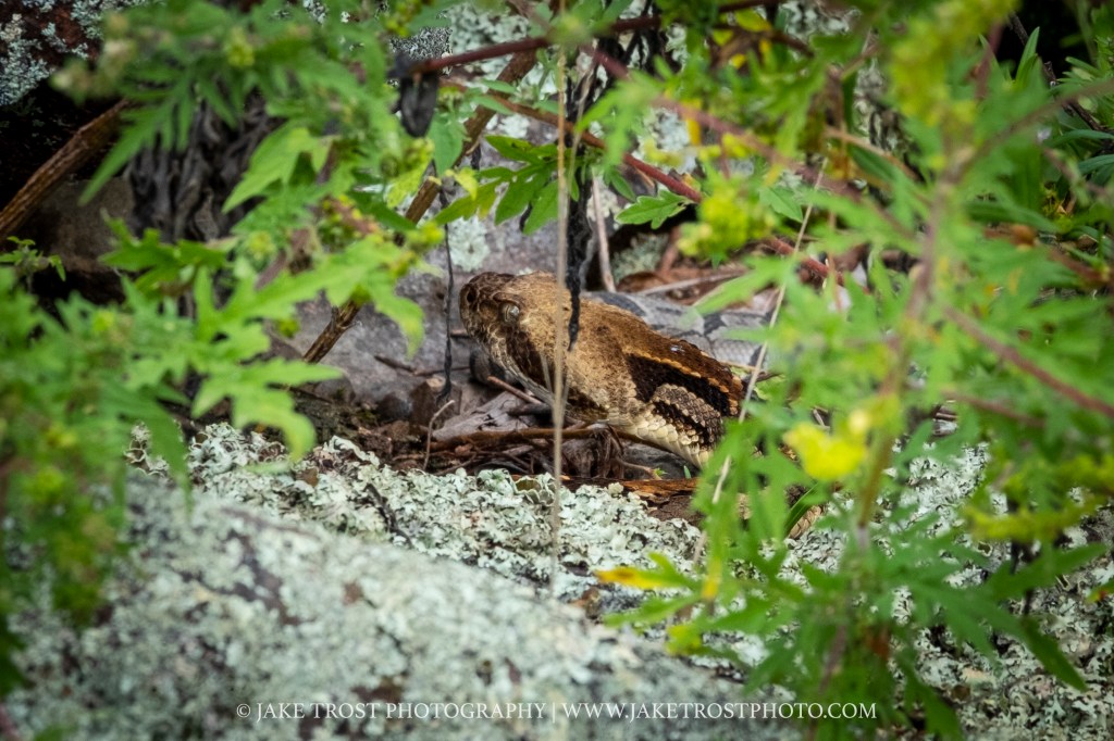 FYI I would not recommend attempting this. I did not agitate her other than the initial introduction with me not knowing I was too close and I gave her plenty of space after she warned me. Timber rattlers are DANGEROUSLY VENOMOUS. I was wearing protective gaiters designed for snake bites because I knew I was in their territory trekking around in the bush. I did everything I knew how to do correctly and safely. Most of all keeping my distance with a long lens.